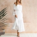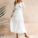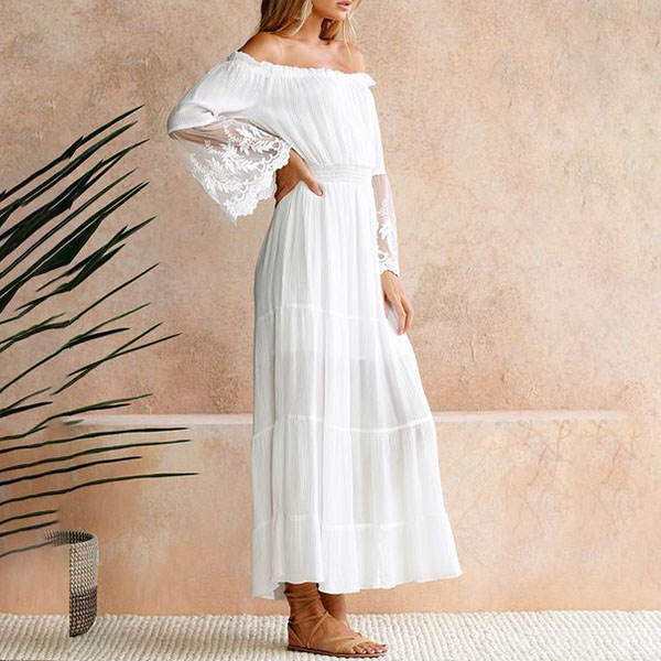 Sexy Lace Spliced Trumpet Sleeve Boat Neck High Waist Dress