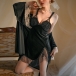 Sexy Lace Spliced Two-piece Loungewear Pajamas Set Consist of Slit Slip Nightwear Dress and Robe