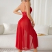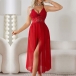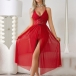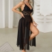 Sexy Lace Spliced V-neck Backless Front Slit Nightwear Dress