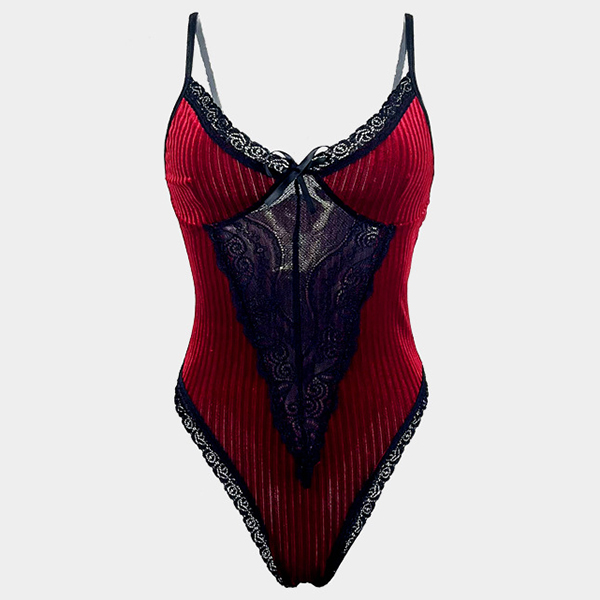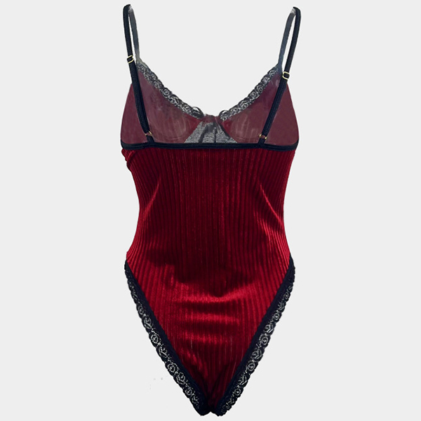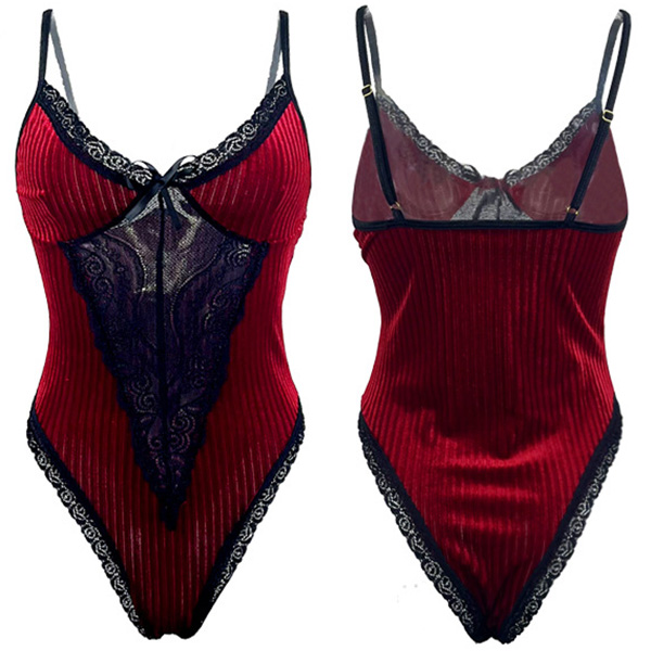 Sexy Lace Spliced V-neck Backless Lingerie Bodysuit
