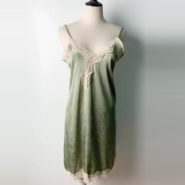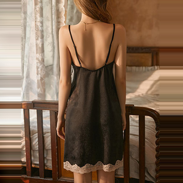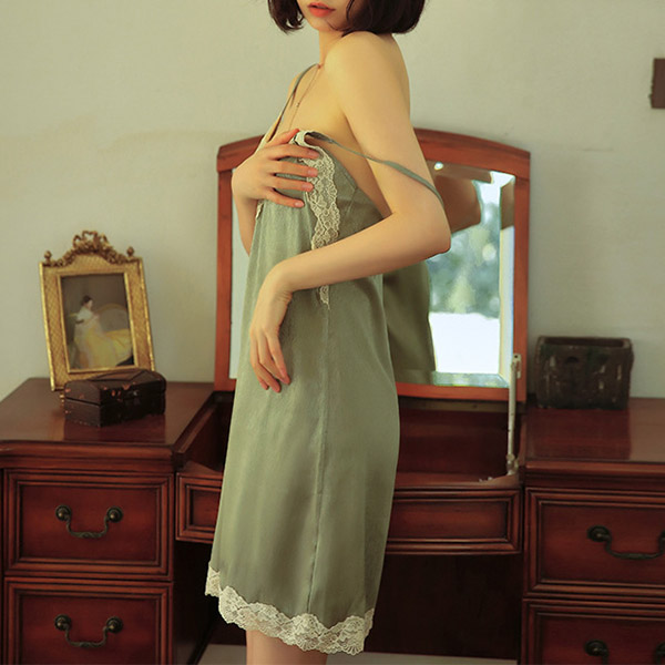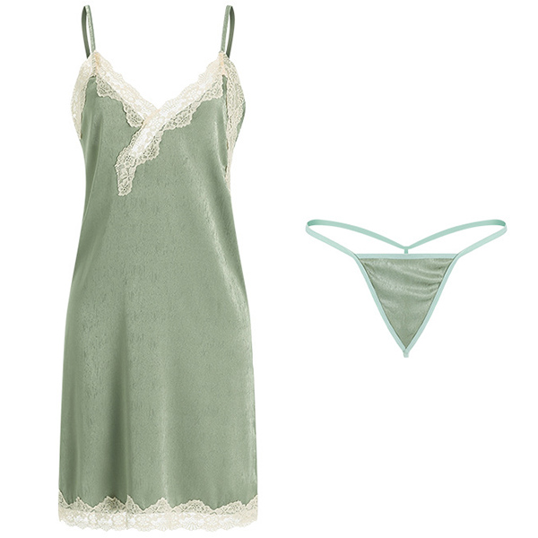 Sexy Lace Spliced V-neck Backless Lingerie Dress Loungewear