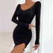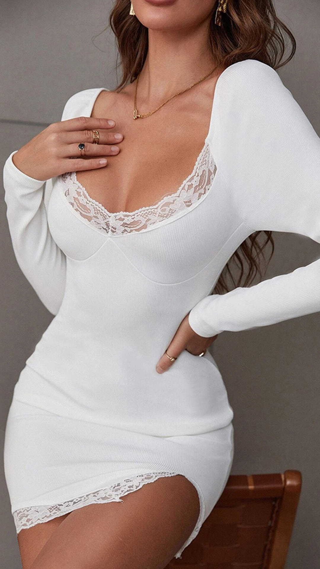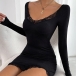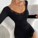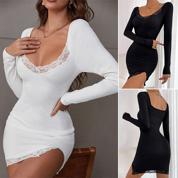 Sexy Lace-spliced V-neck Backless Long Sleeve Bodycon Dress