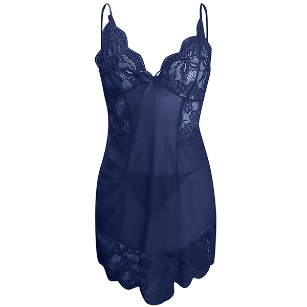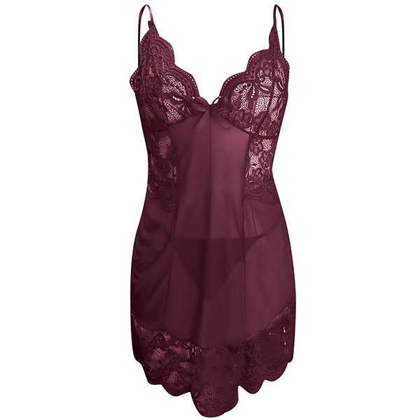 Sexy Lace Spliced V-neck Backless Nightwear Dress