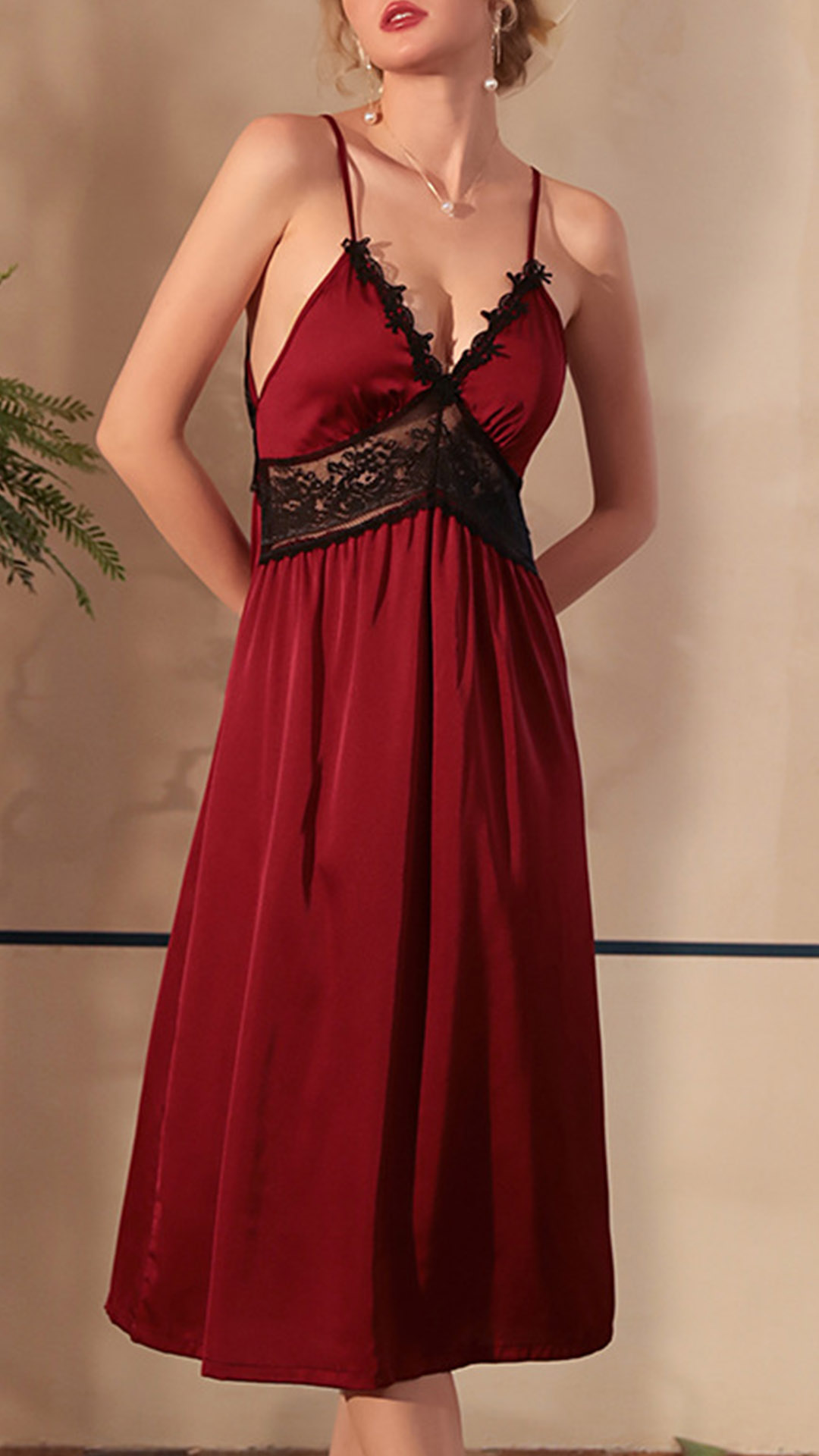Sexy Lace Spliced V-neck Backless Pajamas Dress