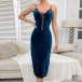 This nightwear dress features delicate lace splicing along the necline and hemline, a plunging V-neckline, a charming bowknot detail, and a backless design for a sultry and glamorous look. Crafted from high-quality and soft fabric, it is both stylish and comfortable.