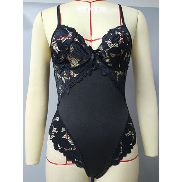 Sexy Lace Spliced V-neck Cami Lingerie Bodysuit