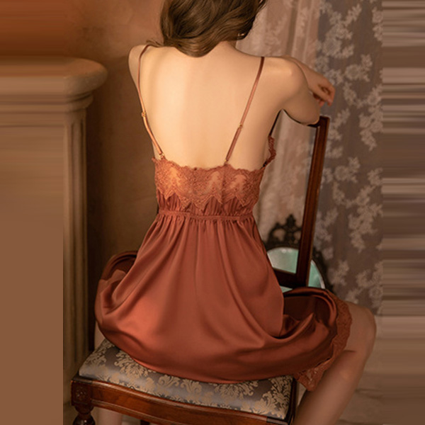 Sexy Lace Spliced V-neck Cami Nightwear Dress