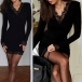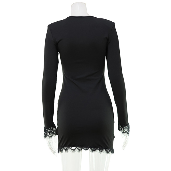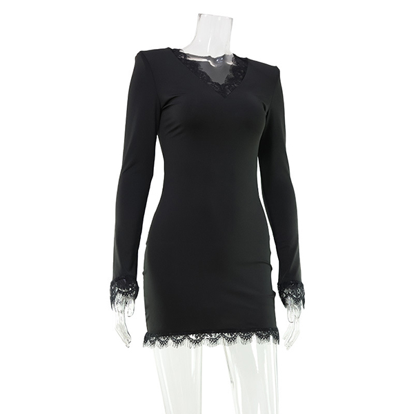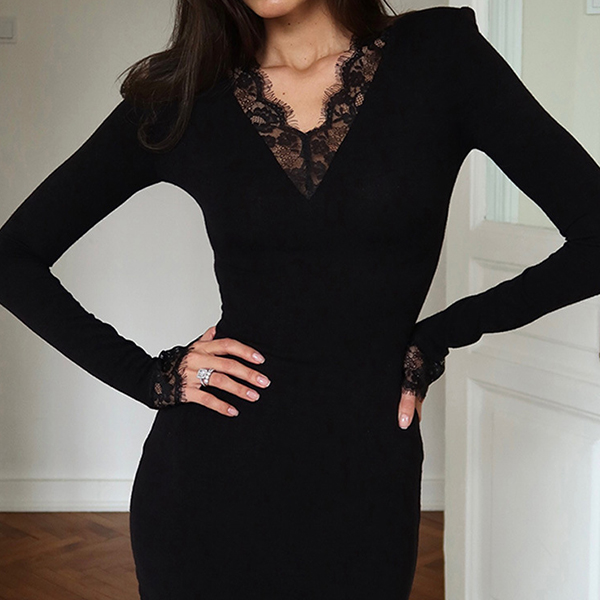 Sexy Lace Spliced V-neck Long Sleeve Bodycon Dress