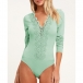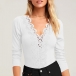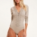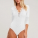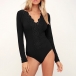 Sexy Lace Spliced V-neck Long Sleeve Bodysuit