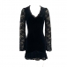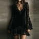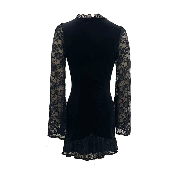 Sexy Lace Spliced V-neck Long Sleeve Ruffle Hemline Bodycon Dress