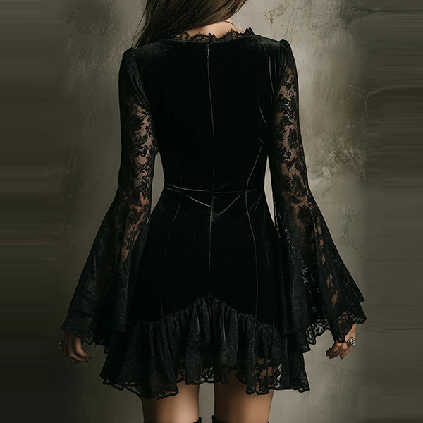 Captivate with feminine allure in this beautifully crafted bodycon dress that combines romantic details with sultry silhouette. Delicate lace splicing introduces luxurious texture and vintage-inspired sophistication, creating artisanal detail throughout the design. The plunging V-neckline creates flattering elongation and graceful femininity, while long sleeves provide elegant coverage that balances the body-conscious fit. Playful ruffle detailing at the hemline adds dimensional movement and whimsical charm, creating gorgeous flow and flirty appeal. Wanna have a try?
