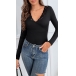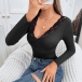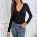 Sexy Lace Spliced V-neck Long Sleeve Solid Color Slim Fit Bottoming Top