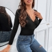 As one of the wardrobe essentials,this simple,all-match yet flirty bottoming top is worth for your attention. The v-neck and lace spliced details will exude your sexy side. Finished with long sleeve and a tight silhouette,this piece allows to be matched with different style outfits.
