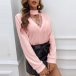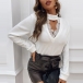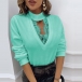 Sexy Lace Spliced V-neck Long Sleeve Solid Color T-shirt