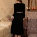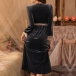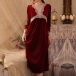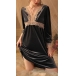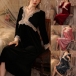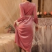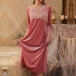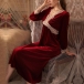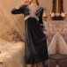 Sexy Lace Spliced V-neck Long Sleeve Velvet Nightwear Dress