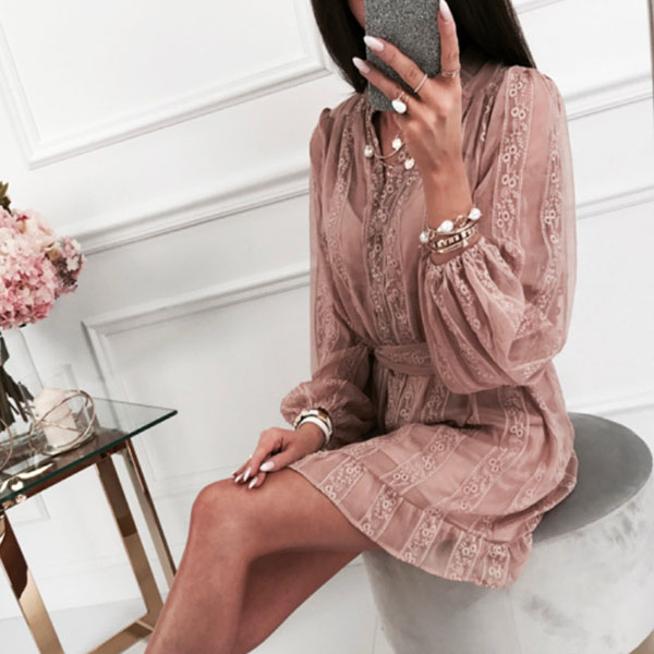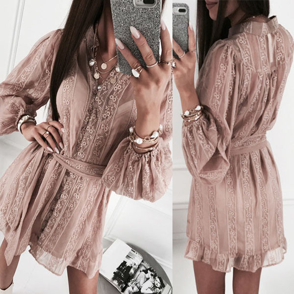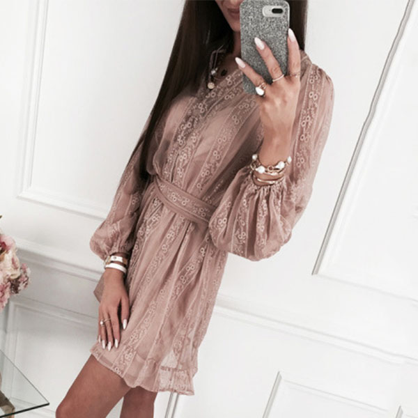 Having a dating with your boyfriend and wanna draw more attention? Then slip into this beautiful dress. The lace spliced,v-neck and puff sleeve design can easily enhance your charm and femininity. So why not take interest in it?