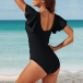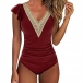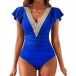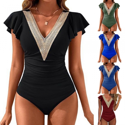 Sexy Lace Spliced V-neck Ruffle Sleeveless Backless One-piece Swimming/Monokini