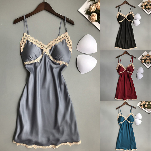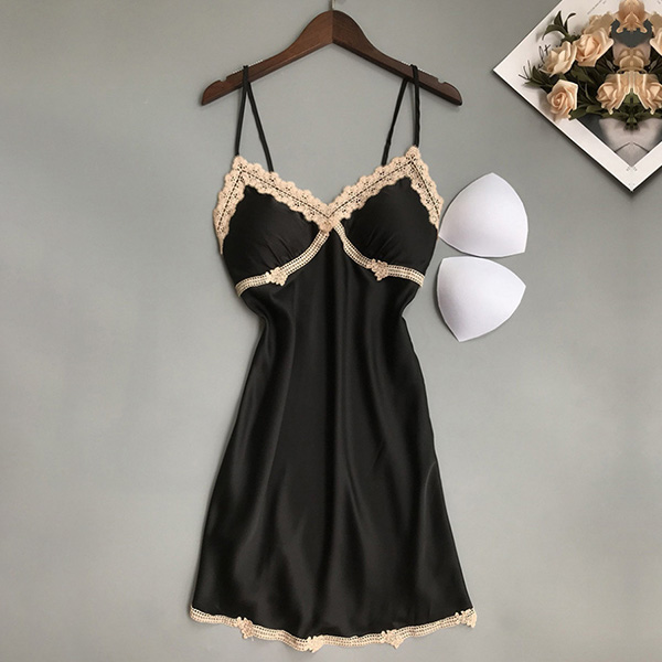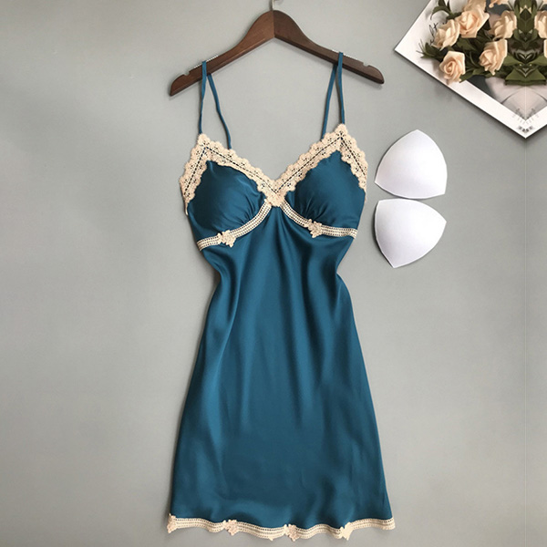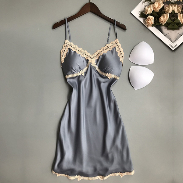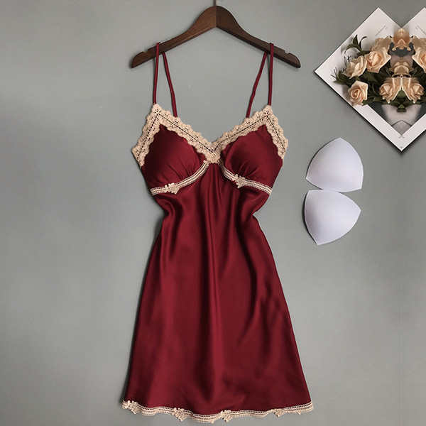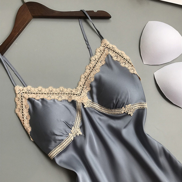 Sexy Lace Spliced V-neck Satin Nightwear Dress