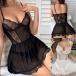 Sexy Lace Spliced V-neck Semi-through Nightwear Slip Dress