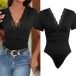 This sexy boodysuit features a plunging V-neckline with lace spliced detailing, and a body-hugging silhouette for a sultry and fashion-forward look. You could pair it with a high-waisted jeans or leather pants for a fashion look.