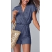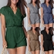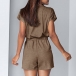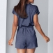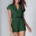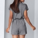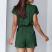 Sexy Lace Spliced V-neck Short Sleeve High Waist Solid Color Romper