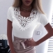 This t-shirt comes with a solid color,the lace spliced v-neck design can showcase your sexy and feminine side,while the fit silhouette design will portray your perfect body-line. You can match it with a high waist shorts or skirt to enjoy these summer days.