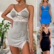 Sexy Lace Spliced V-neck Side Slit Bodycon Nightwear Dress