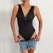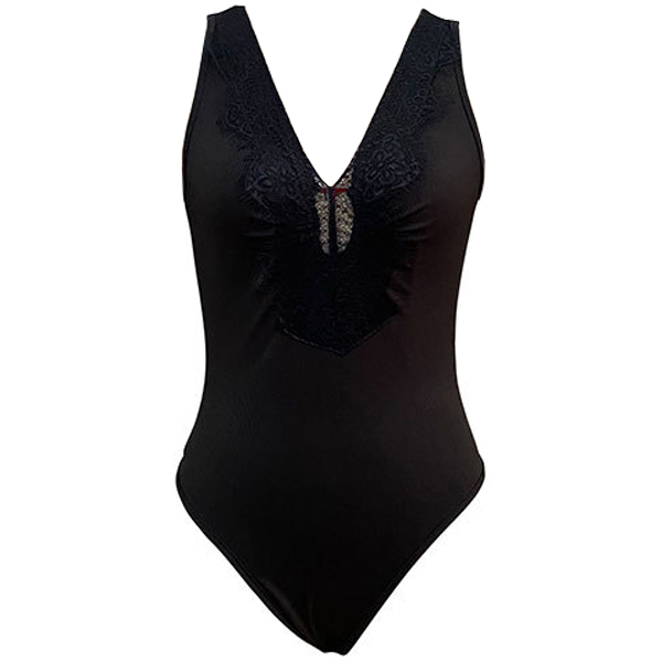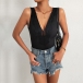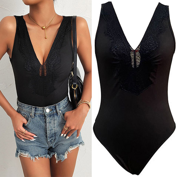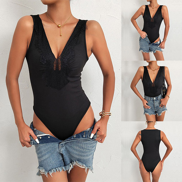 Sexy Lace Spliced V-neck Sleeveless Bodysuit