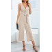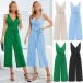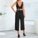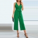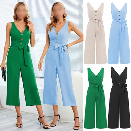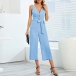 Sexy Lace Spliced V-neck Sleeveless High Waist Solid Color Wide-leg Jumpsuit