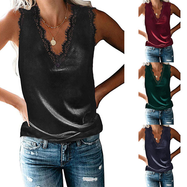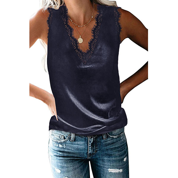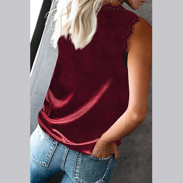 For these hot summer days,this sleeveless top can easily strike your mind. Solid color style,the v-neck and lace spliced details will lend you a sexier look,while its soft and breathable fabric can give you a cool and comfortable day. Perfect fit for matching with different styles.