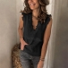 Sexy Lace Spliced V-neck Sleeveless Solid Color Top