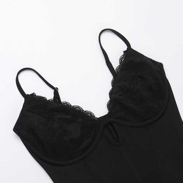 Sexy Lace Spliced V-neck Slim-fit Jumpsuit