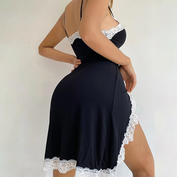 Sexy Lace Spliced V-neck Slit Irregular Hemline Slip Nightwear Dress