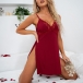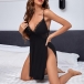 Sexy Lace Spliced V-neck Slit Nightwear Slip Dress