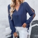 Sexy Lace Spliced V-neck Slit Self-tie Long Sleeve Shirt