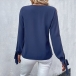 Look at this shirt! The V-neckline with lace spliced accents adds a touch of sensuality, drawing attention to the neckline and décolletage. I like the long sleeve design with slit details and self-tie cuff, which is chic and stylish! Pair it with sleek trousers or a skirt for a stylish ensemble that exudes confidence and femininity.