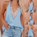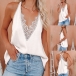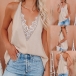 Greet the sun-soaked summer days with a relaxed piece such as this creation. Solid color style,the soft,breathable fabric and loose silhouette design can give you a cool and comfortable day,while the v-neck and lace spliced details will lend you some flirty and feminine appeal. Just add this piece to your summer wardrobe.