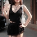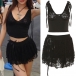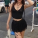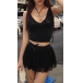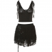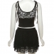 Sexy Lace Two-piece Set Consist of V-neck Crop Top and Bowknot Mini Skirt