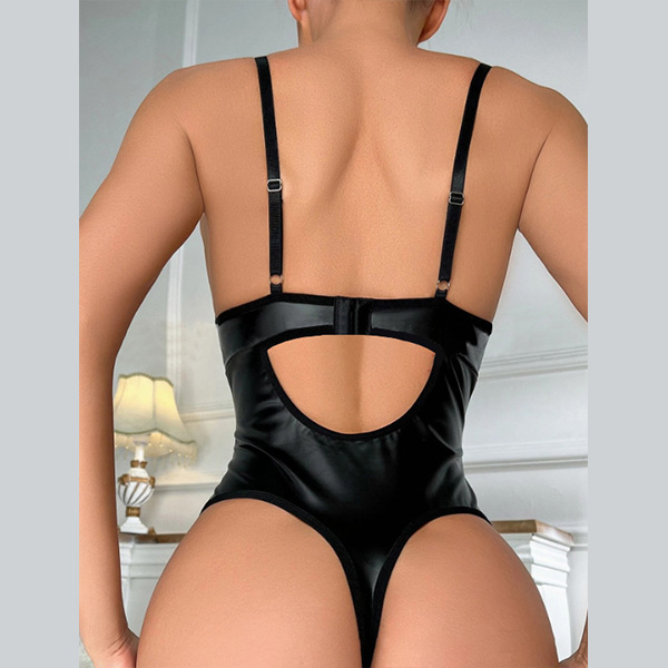 Sexy Lace-up Backless Artificial Leather PU Lingerie Bodysuit