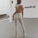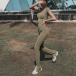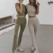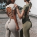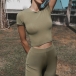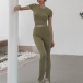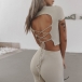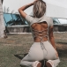 Sexy Lace-up Backless Short Sleeve Crop Top + Pants Sports Two-piece Set