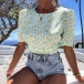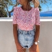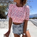 Sexy Lace-up Backless Short Sleeve Round NeckPrinted Top