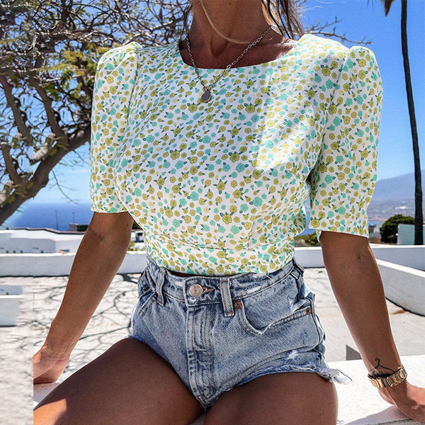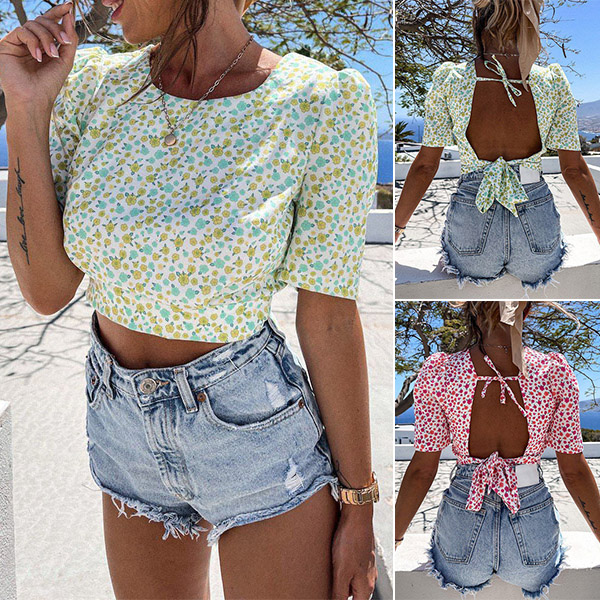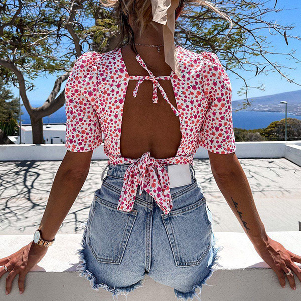 For these summer days,this sassy and flirty top can easily strike your mind. Its vibrant floral print details make it full of fresh and sweet vibes. Moreover,the backless and lace-up design at the back side will make this piece look more alluring. Try to match with your high waist bottoms to finish