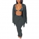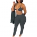 Sexy Lace-up Bra + Long Sleeve Cardigan + Pants Knit Three-piece Set