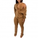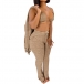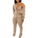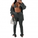 In these autumn days,this tree-piece set can easily arouse your attention. Solid color style,including a lace-up bra,a ling sleeve cardigan and a slit hem pants,crafted from soft and breathable fabric,this three-piece set not only can keep you feeling comfy and warm,but also can date your style and boost your charm.