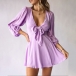 You can easily be the focus when you g out with this dress. The lace-up deep v-neck design can offer you a more alluring look. Solid color style,finished with high waist and 3/4 lantern sleeve,this dress not only can showcase your slender figure,but also can exude your sassy and stylish sense.