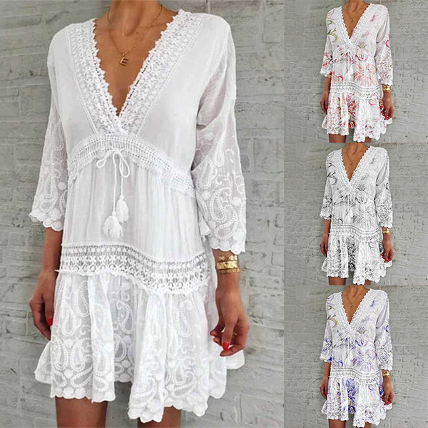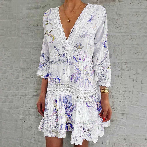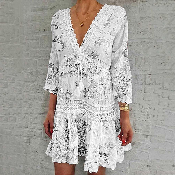 Still worrying about what to wear for your night dating and weekend gatherings? Then this dress can be your perfect solution. The lace-up deep v-neck,lace spliced details and printed design make this piece look so sexy,alluring yet feminine,while the high waist design can showcase your slender figure. Just need to match with your sexy heels,then you can look beautiful enough!