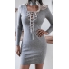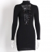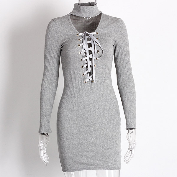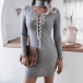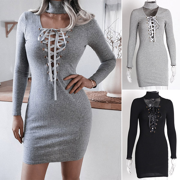 Sexy Lace-up Deep V-neck Long Sleeve Slim Fit Dress