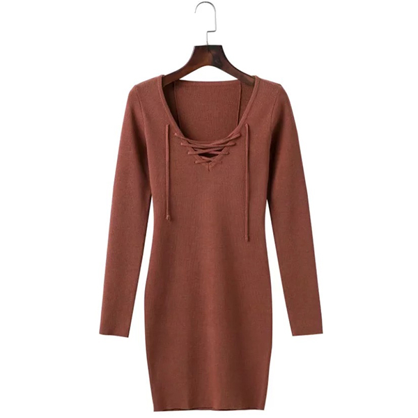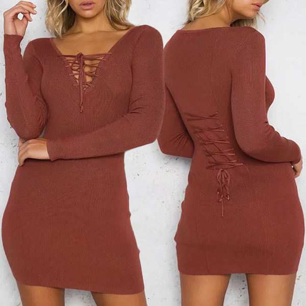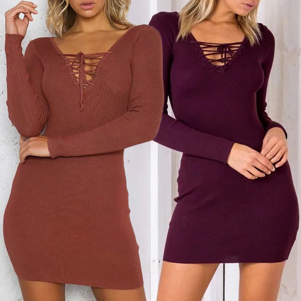 Wanna showcase your sexy and seductive curve? Then you can throw yourself into this knit tight dress! Solid color style,