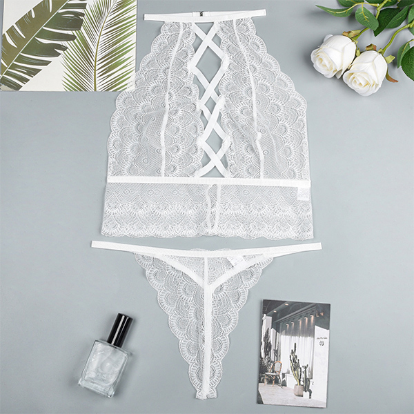 Sexy Lace-up Halter Neck Backless Two-piece Lingerie Set
