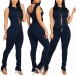 Sexy Lace-up Key-hole High Waist Slim Fit Denim Jumpsuit